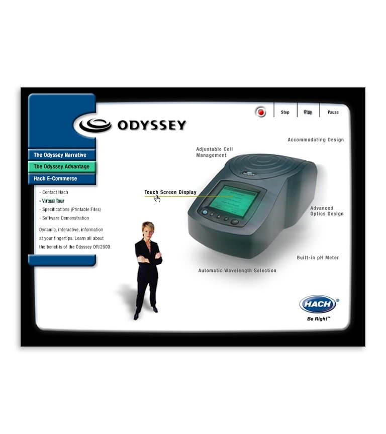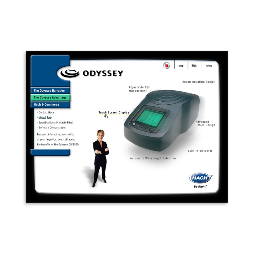 Interactive walk-through of the product line, the features and benefits of each model, market positioning and company philosophy. Part of a robust marketing campaign for the complete Odyssey product line.