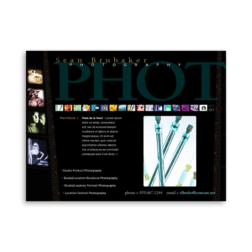 The design and development of a photographer’s portfolio and industry specific applications. Set up for the client to make updates via an external Macromedia Director cast.